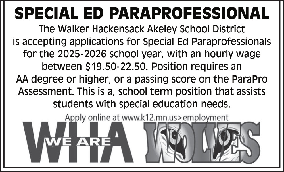 Special Ed Paraprofessional Job Opening in Walker, MN