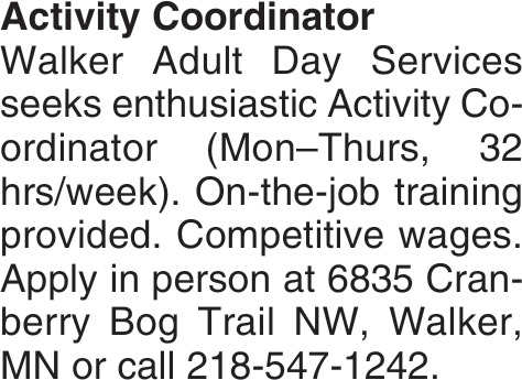 Activity Coordinator Job Opening in Walker, MN