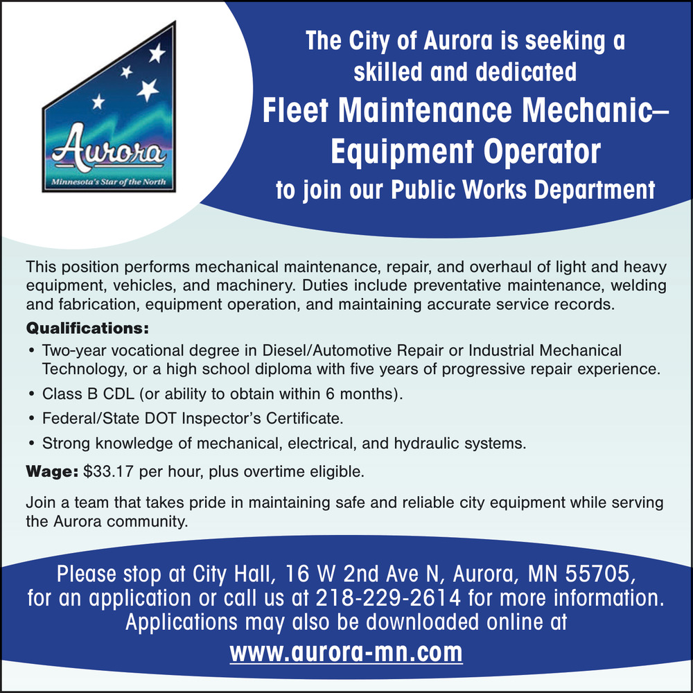 Oct 04, 2025. City of Aurora Government Jobs from Minnesota State Jobs