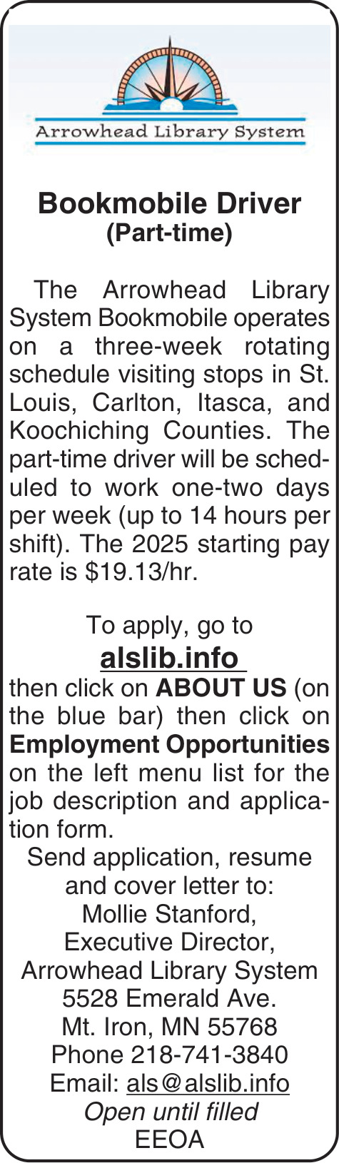 Bookmobile Driver Jobs in Mountain Iron, MN