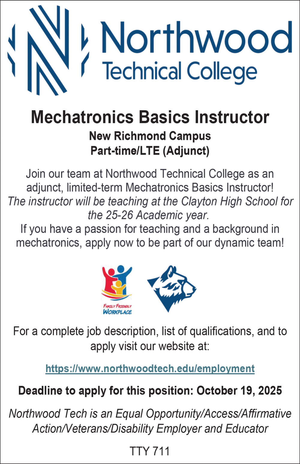 Oct 07, 2025. Northwood Technical College - New Richmond Campus Education Jobs from Minnesota State Jobs