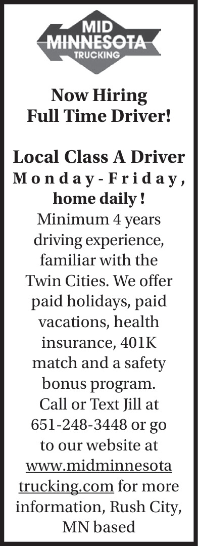Jobs for Mid Minnesota Trucking in Rush City, MN