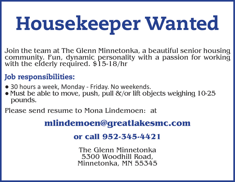 Oct 09, 2025. The Glenn - Minnetonka Housekeeper Jobs from Minnesota State Jobs