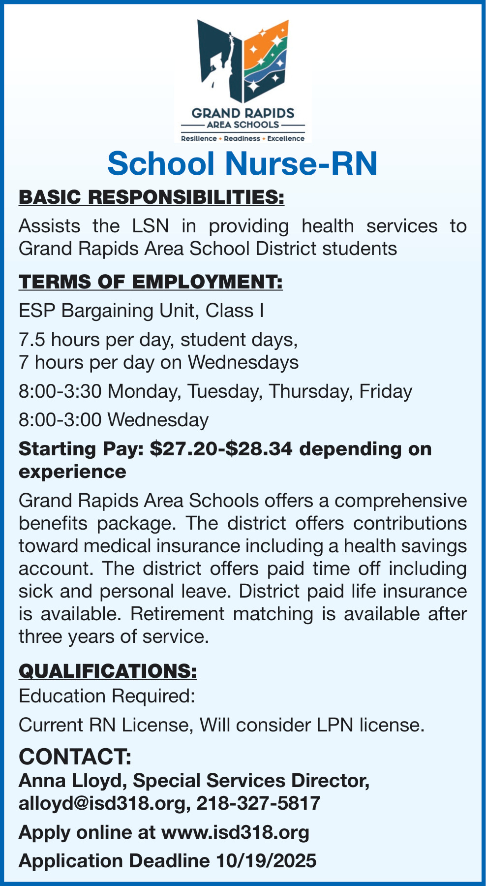 Oct 12, 2025. Grand Rapids Area Schools Healthcare/ Dental Jobs from Minnesota State Jobs