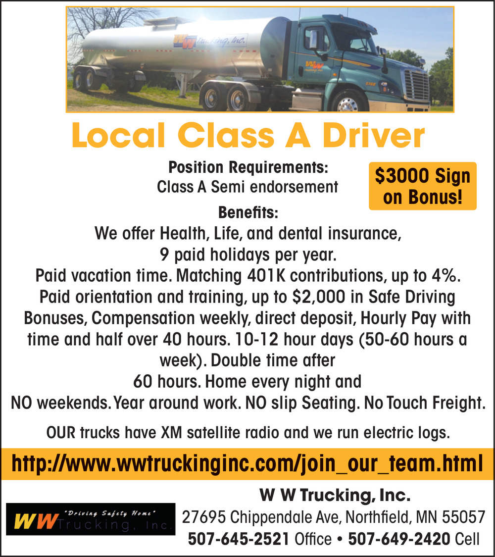 Jobs for W W Trucking, Inc in Northfield, MN
