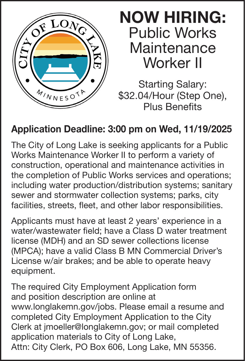 Oct 28, 2025. City of Long Lake Maintenance Jobs from Minnesota State Jobs
