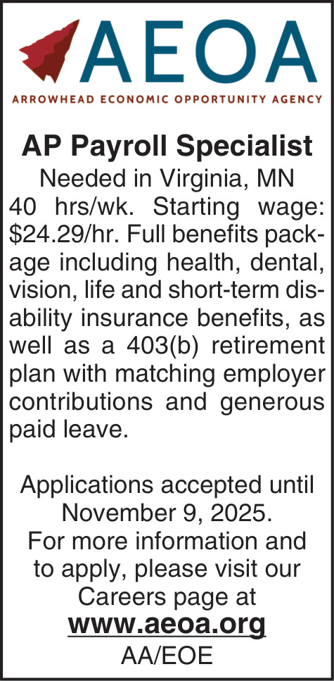 AP Payroll Specialist Position Available in Virginia, MN