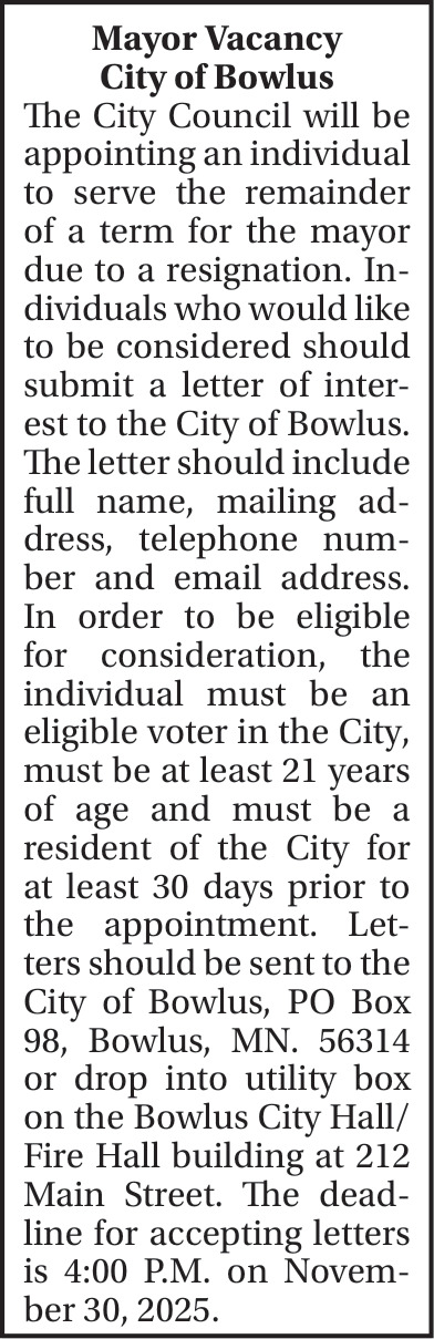 Nov 19, 2025. The City of Bowlus Administration Jobs from Minnesota State Jobs