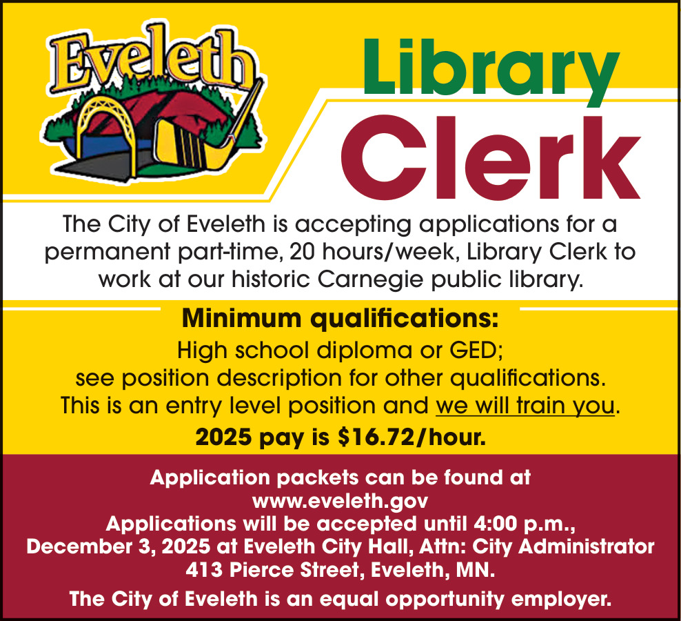 Nov 22, 2025. City Of Eveleth Clerk Jobs from Minnesota State Jobs