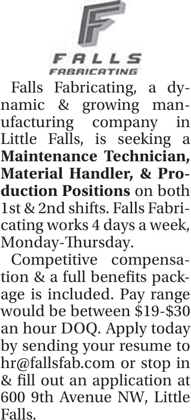 Dec 21, 2025. Falls Fabricating LLC Maintenance Jobs from Minnesota State Jobs