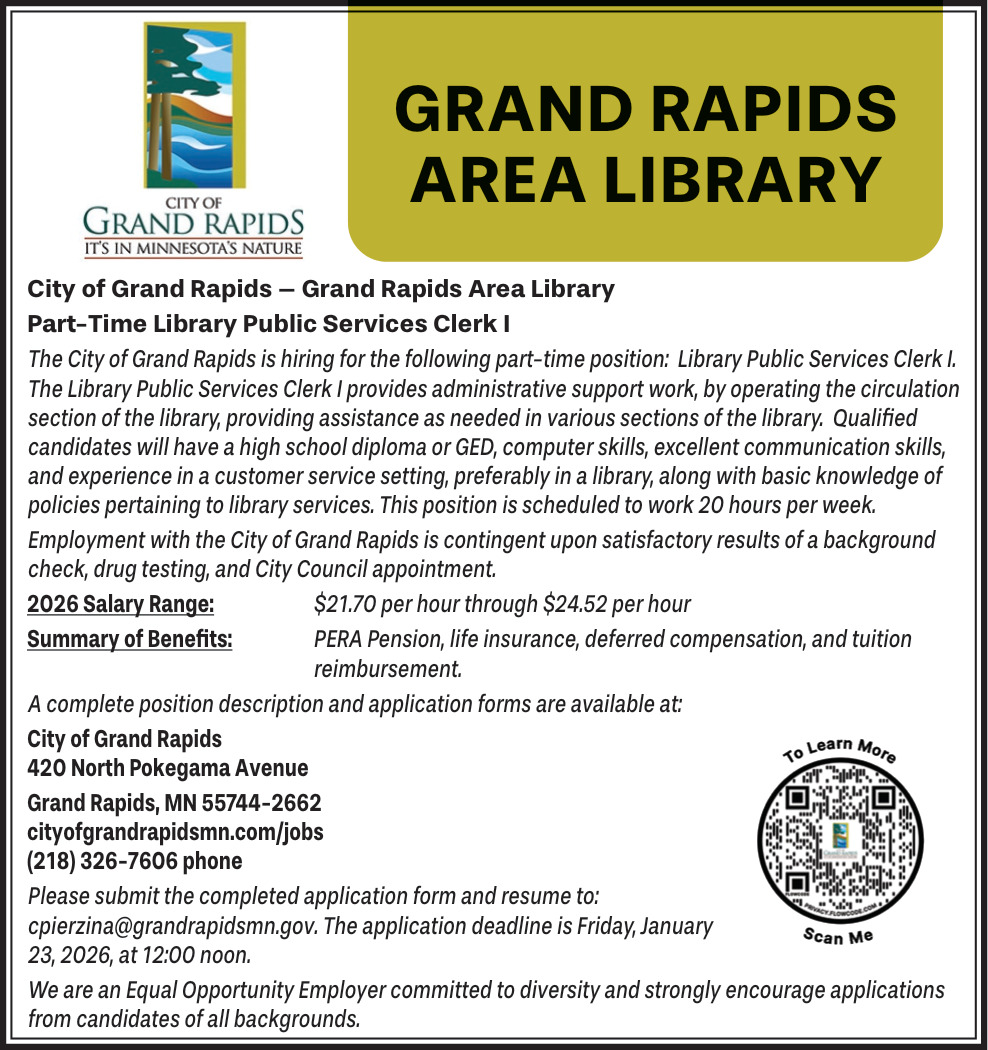 Public Services Clerk Job Opening in Grand Rapids, MN