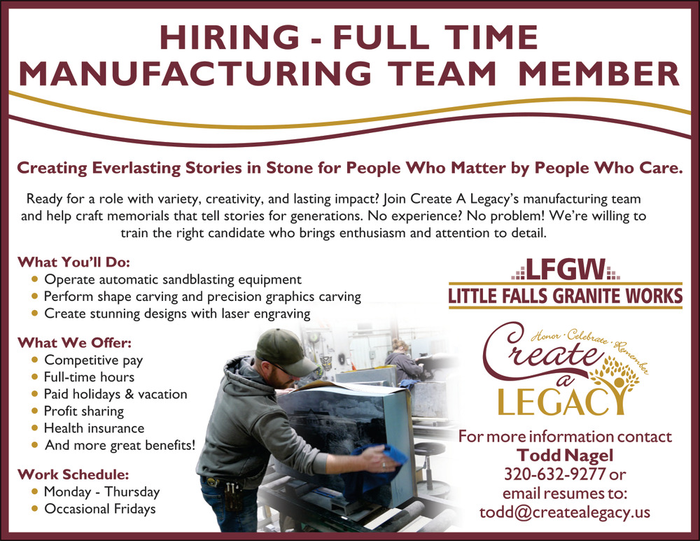 Jan 21, 2026. Little Falls Granite Works Manufacturing Jobs from Minnesota State Jobs