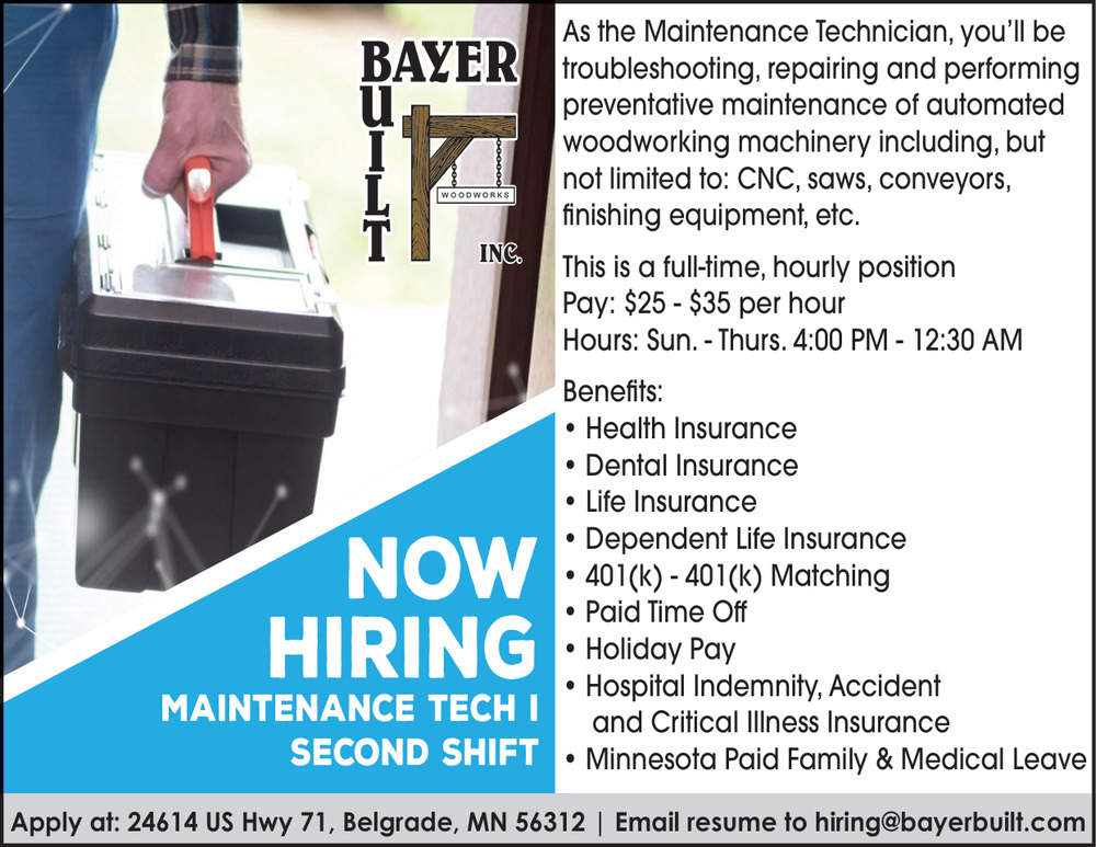 Jan 26, 2026. Bayer Built Woodworks, Inc Maintenance Jobs from Minnesota State Jobs
