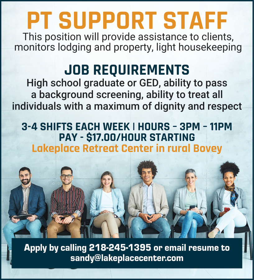 Support Staff Person Position Available in Bovey, MN