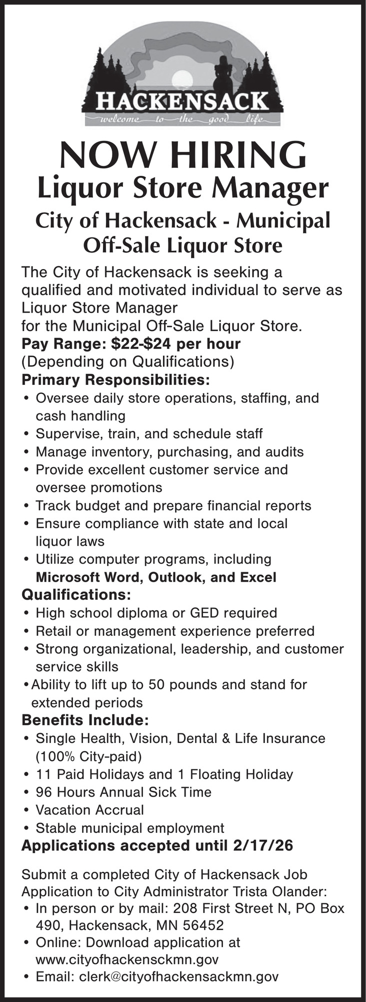 Feb 11, 2026. City of Hackensack Manager / Supervisor Jobs from Minnesota State Jobs