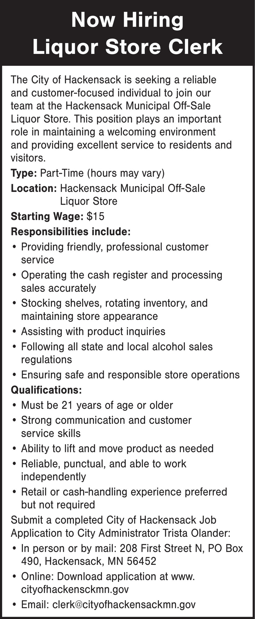 Jobs for City of Hackensack in Minnesota