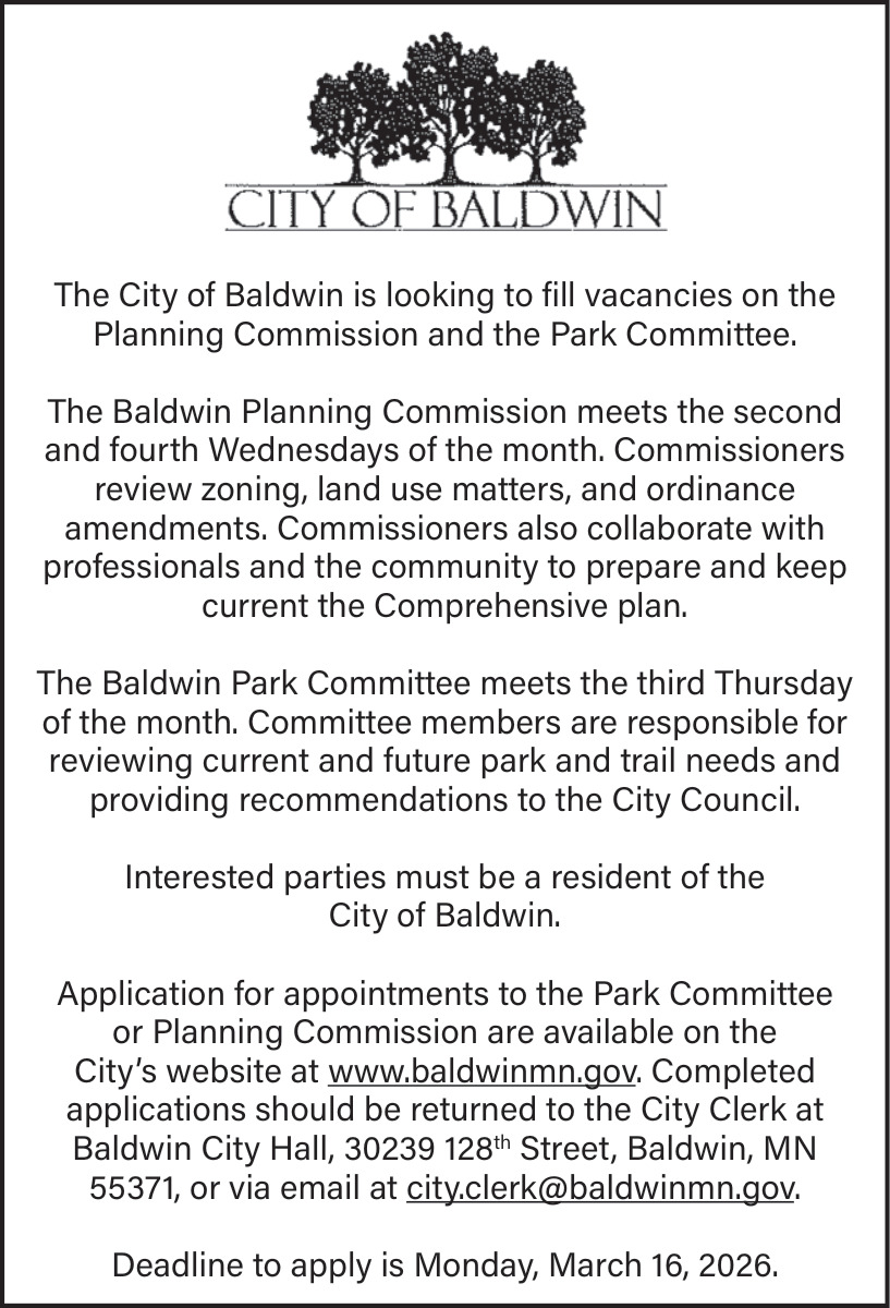 Feb 13, 2026. City of Baldwin Government Jobs from Minnesota State Jobs