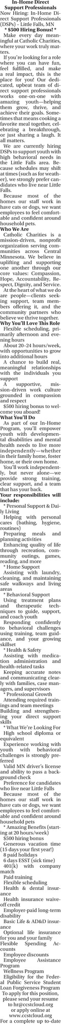 In-Home Direct Support Professionals Job Openings in St Cloud, MN