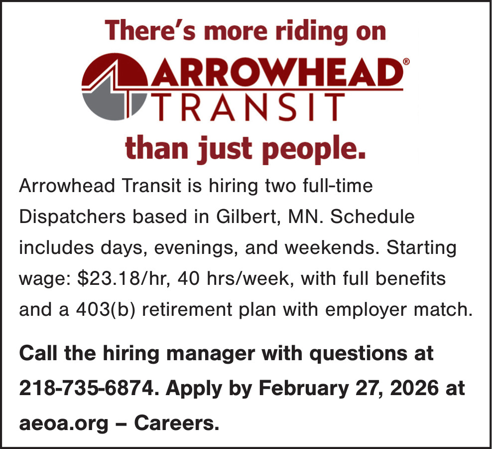 Feb 14, 2026. Arrowhead Transit General Jobs from Minnesota State Jobs