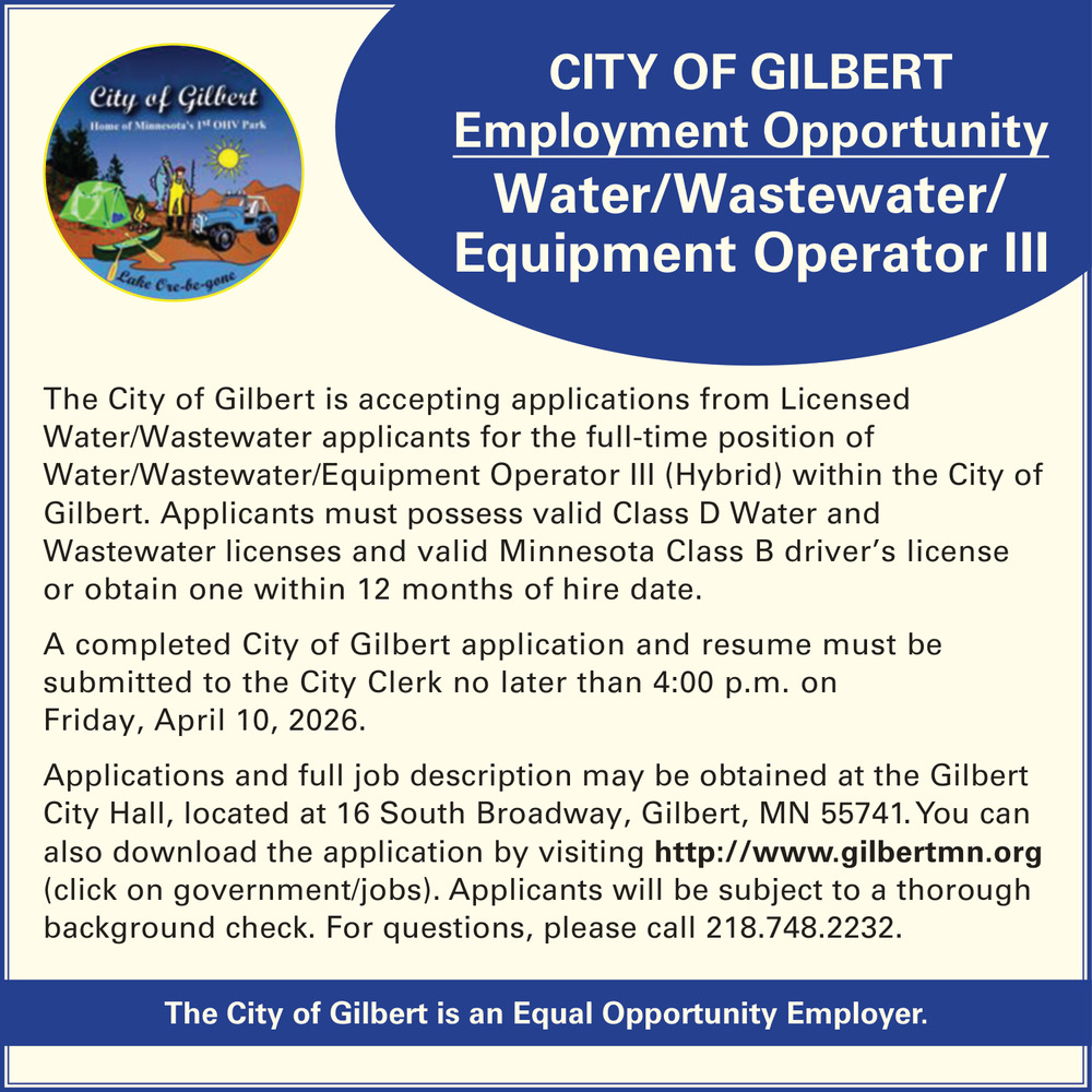 Jobs for City of Gilbert in Gilbert, MN