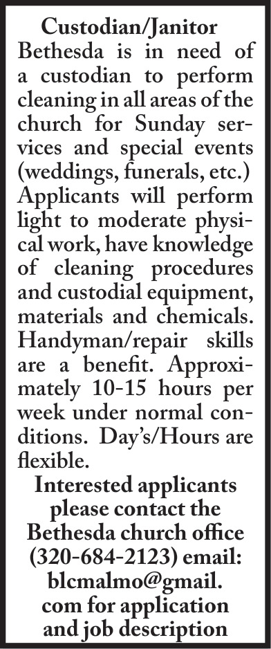 Jobs for Bethesda Lutheran Church of Malmo in Isle, MN