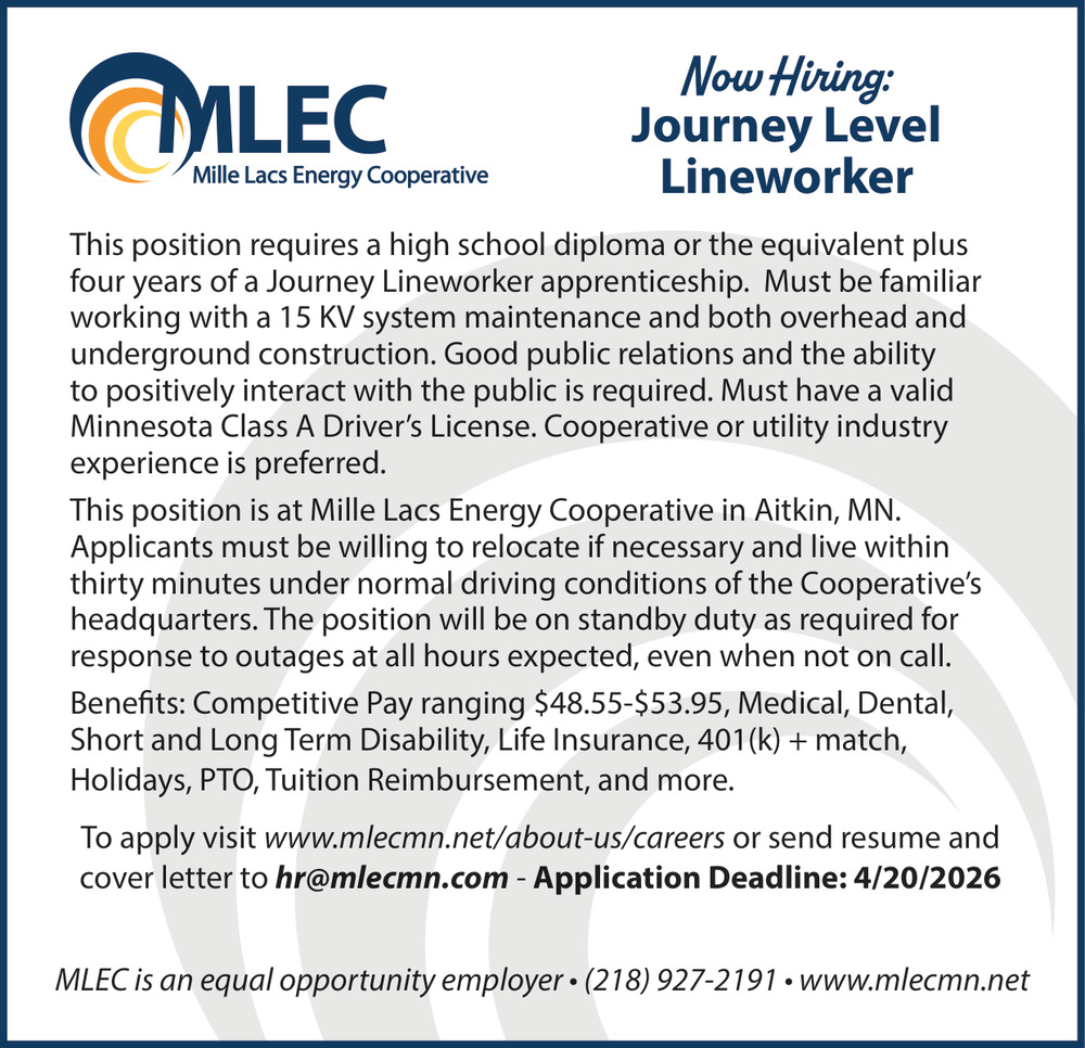 Jobs for MLEC - Mille Lacs Energy Cooperative in Aitkin, MN