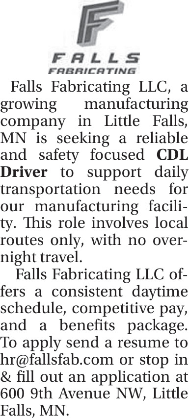 Mar 29, 2026. Falls Fabricating LLC Drivers Jobs from Minnesota State Jobs