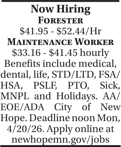 Apr 02, 2026. City of New Hope Maintenance Jobs from Minnesota State Jobs