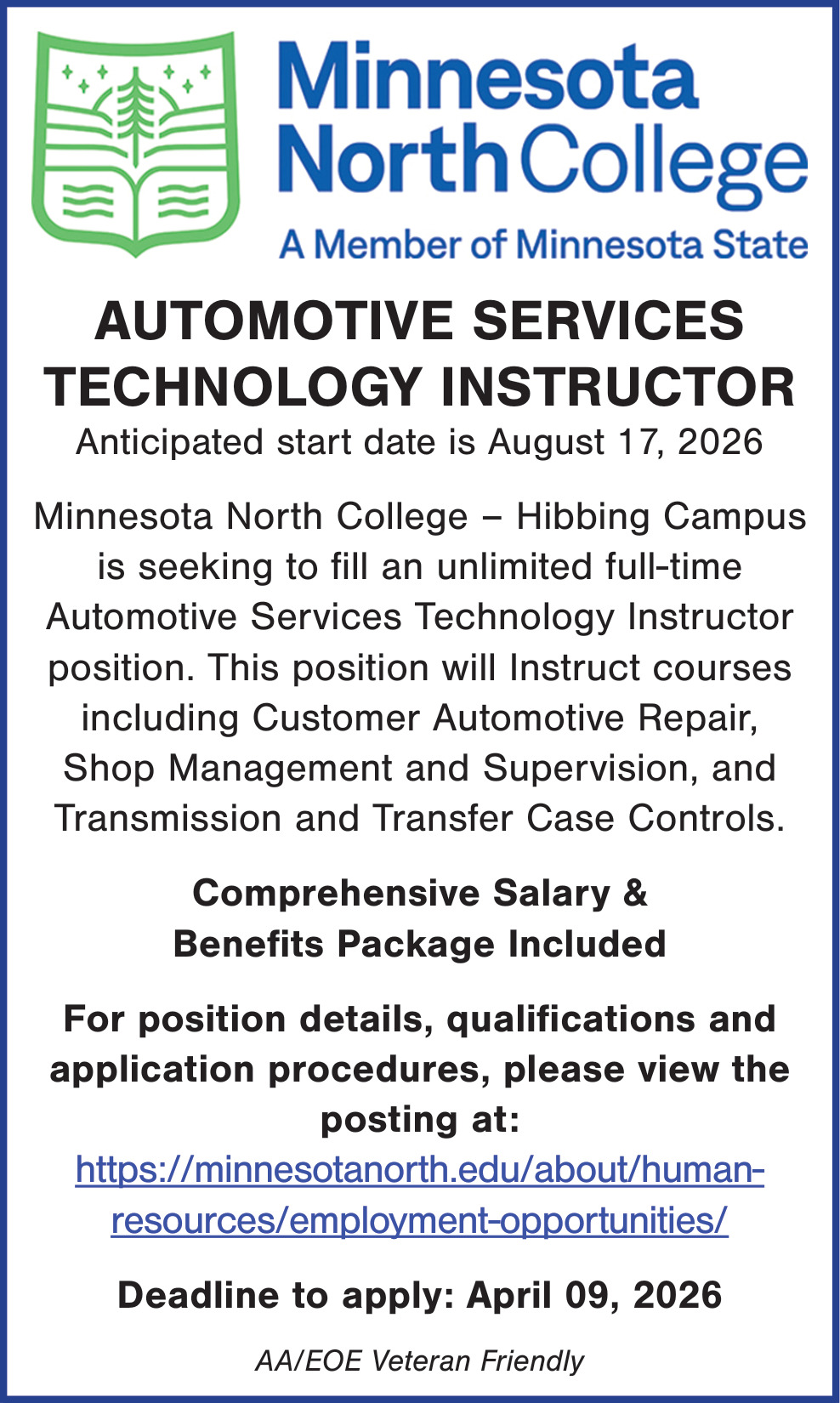 Automotive Services Technology Instructor Job Openings in Minnesota