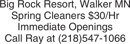 Spring Cleaners Job Opening in Walker, MN