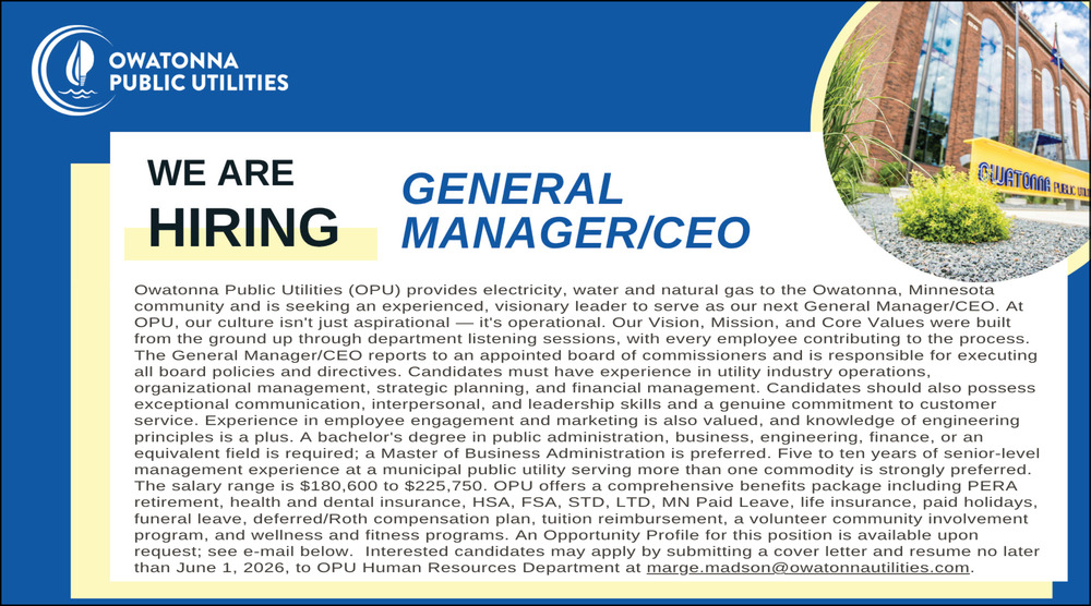 Apr 28, 2026. Owatonna Public Utilities Manager / Supervisor Jobs from Minnesota State Jobs